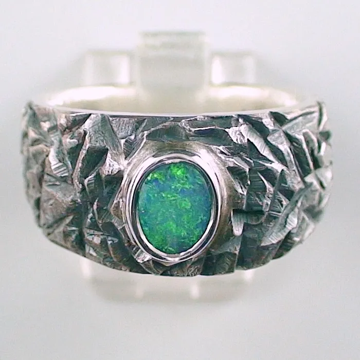 0,89 ct Semi Black Opal massiver Herrenring aus 935er Silber – Lightning Ridge Australien