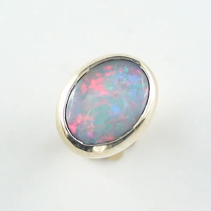 Massiver 0,90 ct White Opal Gelbgold Ohrring 14k Single-Ohrstecker 585er Gold  – Ein hochwertiger Opal Ohrring – Ohrschmuck online bei der Opal-Schmiede kaufen für Herren. Wunderschöner 14k (585er) Single Ohrstecker mit einem seltenen White Opal. Eine hochwertige Verschuß-Mutter aus massivem 14k Gelbgold sorgt für den sicheren Halt des Ohrrings. Der massive Ohrstecker wurde in unserer eigenen Schmiede hergestellt.  Wunderschöner Opal mit sehr intensiven Farben. Der Opal hat ein sehr schönes Farbspiel was sich bei jeder Bewegung ändert. Er ist ein absoluter Blickfang. Die Farben sind in natura intensiver als auf dem Foto oder im Video. Ohrringe Details Material: massiv Gelbgold 585 / 14k Gewicht: 1,30 Gramm Länge: 9,19 mm          Breite: 7,26 mm Höhe: 3,41 mm   Opal Typ: GEM Class White Opal Herkunft: Coober Pedy – Australien Opal Größe (LxBxH): 8,03 x 6,12 x 2,66 mm Schliff: Oval Behandlung: keine Gewicht: 0,90 ct (5 Karat = 1 Gramm) Farben: multicolor Körperfarbe: N7 Brillianz: 5   ►Jedes Schmuckstück wird mit einem Lichtbild-Zertifikat ausgeliefert. Nähere Informationen entnehmen Sie bitte den zuvor tabellarisch gelisteten Details sowie dem beigefügten Video und de…