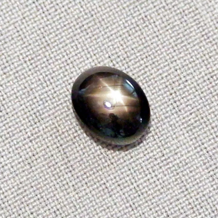 Schwarzer Sternsaphir im Cabochon-Schliff mit 10,97 ct Gewicht, schwarzer Edelstein mit goldbraunen Stern – Top Edelsteine bei der Opal-Schmiede sicher bestellen Echter 10,97 ct Sternsaphir mit Zertifikat. Ein wunderschöner schwarzer Stern-Saphir mit einem goldbraunen Stern. Bei jeder weiteren Lichtquelle bildet sich ein zusätzlicher Stern auf der Oberfläche. Ein äußerst faszinierendes Produkt von Mutter Natur im Cabochon-Schliff. Der Stern-Saphir Preis hängt von verschiedenen Faktoren ab. Wir können Sie sehr gern über unsere Edelsteine und deren Preise beraten. Ein wunderschöner Edelstein, perfekt geeignet als Schmuckstein. Sehr gern stellen wir Ihnen aus diesem  schönen Edelstein ein Schmuckstück aus Gelbgold oder Weißgold her. Auch ein Schmuckstück aus Silber bietet sich an. Alles aus einer Hand – die Opal-Schmiede macht es möglich. Edelstein Details Edlestein: 1 x natürlicher Sternsaphir Herkunft: Thailand Schliff: Cabochon Gewicht: 10,97 ct. Größe: 13,39 x 10,42 x 6,48 mm Farbe:   tief schwarz mit goldbraunem Stern und rolling flash Reinheit: vsi Schliffausführung: sehr gut Politur / Symmetrie: sehr gut / sehr gut Behandlung: keine …
