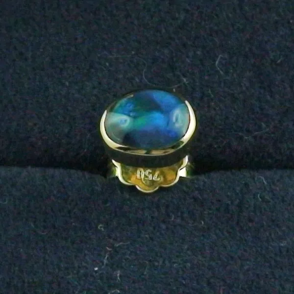 Männer Single-Ohrring 18 k Gelbgold 1,19 gr mit Black Opal 0,66 ct – Ohrring für Herren mit Opalstein von der Opal-Schmiede Erwerben Sie bei der Opal-Schmiede diesen wunderschönen 18 k (750er) Geldgold Männer Single-Ohrring mit einem Top GEM 0,66 ct schweren Black Opal. Eine hochwertige Verschuß-Mutter aus massivem 18k Gelbgold sorgt für den sicheren Halt des Ohrrings. Passend zu diesem schönen Ohrstecker haben wir noch einen zweiten Single Ohrring, der sich hervorragend mit diesem zu einem Ohrstecker Pärchen kombinieren lässt, so können Sie dieses als Pärrchen für Ihre Partnerin erwerben. Sie finden den passenden Ohrring unter der Artikelnummer A00414. Wunderschöner Opal mit sehr intensiven Farben. Der Opal hat ein sehr schönes Farbspiel was sich bei jeder Bewegung ändert. Er ist ein absoluter Blickfang. Die Farben sind in natura intensiver als auf dem Foto oder im Video. Ohrringe Details Material: massiv Gelbgold 750 / 18k Gewicht: 1,19 Gramm Länge: 7,73 mm          Breite: 6,03 mm Höhe: 4,26 mm   Opal Typ: GEM Class Black Opal Herkunft: Lightning Ridge – Australien Opal Größe (LxBxH): 6,61 x 5,25 x 3,24 mm Schliff: Fancy Behandlung: keine Gewicht: 0,66 ct (5 Karat = 1 Gramm) Farben: intensives blau, türkis Körperfarbe: …