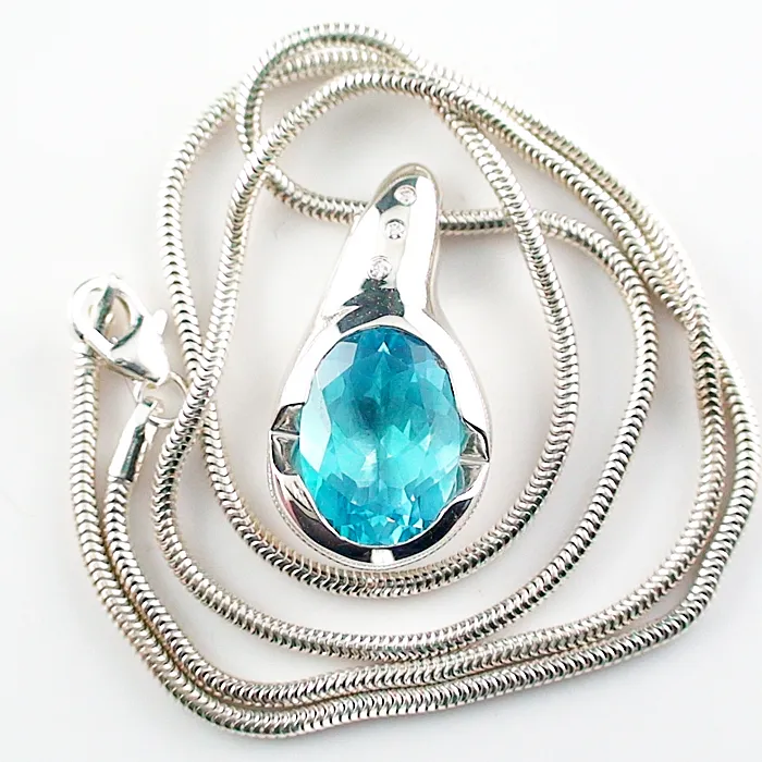 13,82 ct Blautopas Anhänger mit Diamant in 935er Silber, Ovalschliff