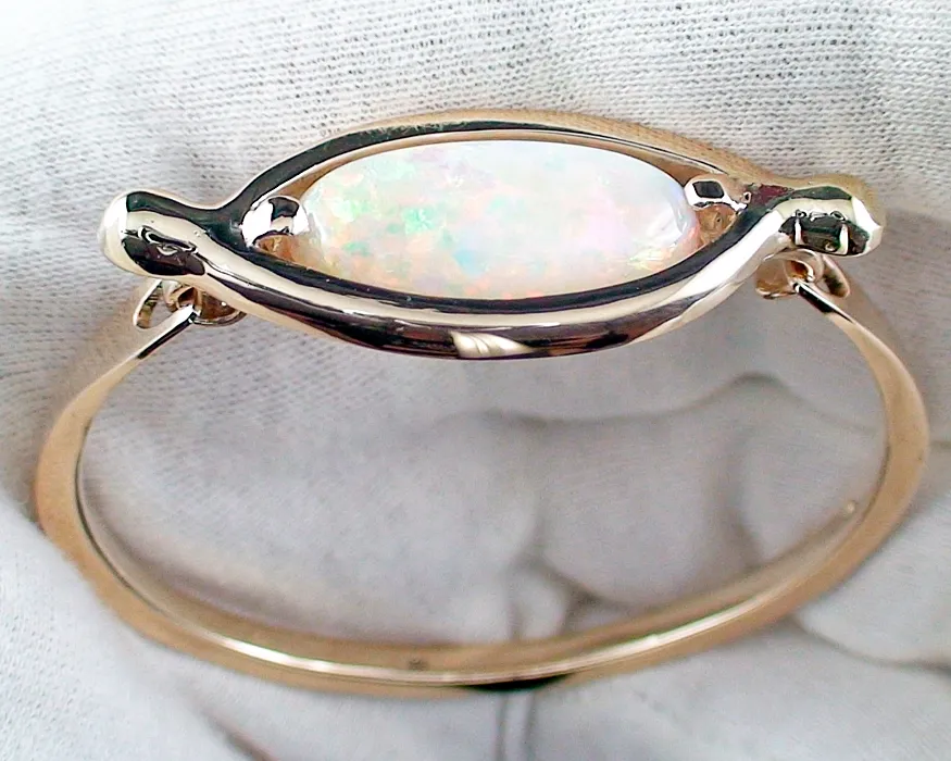 14k/585 Gelbgold Armreif mit White Opal aus Lightning Ridge – Schmuckstück mit Klappmechanismus