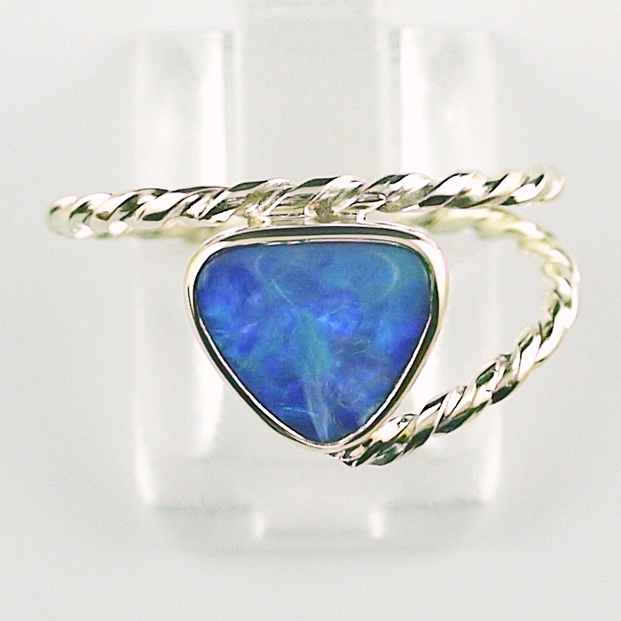 14k 585er Goldring mit blauem 0,71 ct Black Crystal Opal