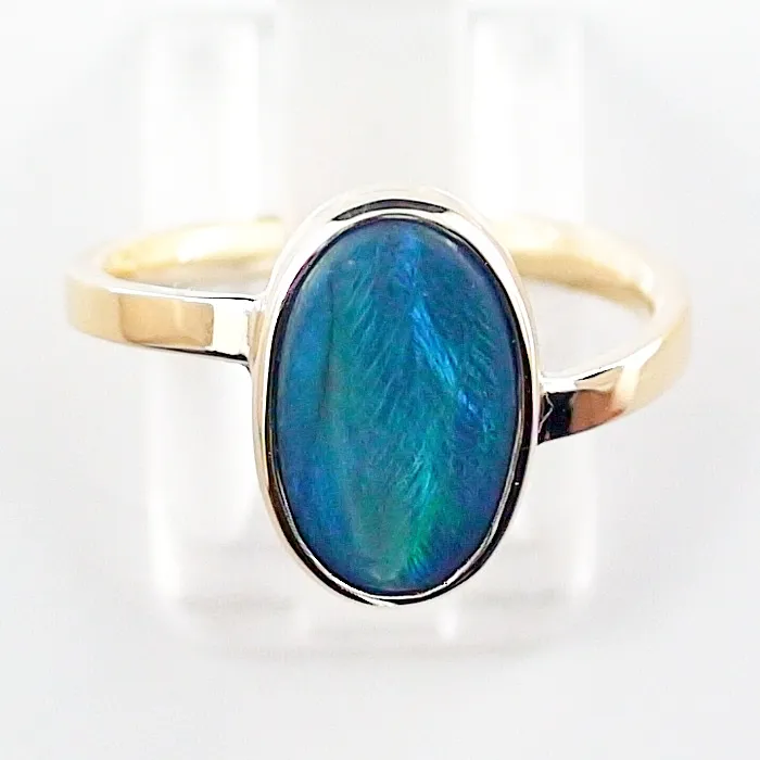 18k Goldring mit 1,58 ct. Top GEM Class Black Opal – Blau Grün Türkiser Opalstein