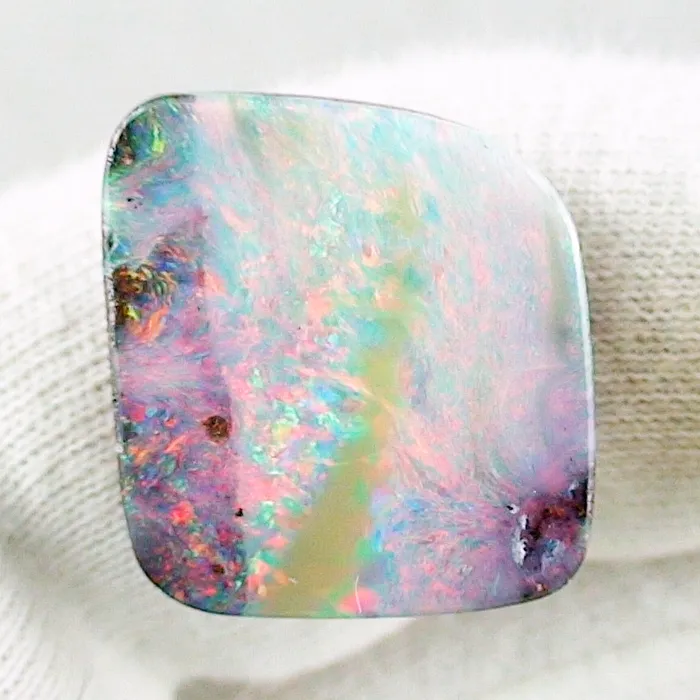 Echter 21,60 ct. Boulder Opal  – Top Boulder Opale bei der Opal-Schmiede sicher bestellen – Immer mit Zertifikat Dieser exquisite Boulder Opal ist nicht nur ein faszinierendes Naturschauspiel, sondern auch eine wertvolle Investition in die Zukunft. Mit den Maßen 20,21 x 18,67 x 6,67 mm und seiner fancy Form besticht er durch Eleganz und Ausdrucksstärke. Die multicolor Farbgebung, in Verbindung mit einer außergewöhnlichen Brillanz von 5, macht diesen Opal zu einem wahren Schmuckstück, das durch seine lebendigen Farben in jedem Licht zu strahlen beginnt.Opale aus den berühmten Boulder Opal Fields zeichnen sich durch ihre besondere Tiefe und die einzigartige Farbvielfalt aus, die in diesem Stein perfekt zur Geltung kommen. Als wertvolles Sammlerobjekt gewinnt er über die Zeit an Bedeutung, was ihn zu einer sicheren Wahl für langfristige Investitionen macht.Zusätzlich bieten wir Ihnen die Möglichkeit, diesen außergewöhnlichen Boulder Opal in ein individuelles Schmuckstück zu verwandeln. Dadurch wird er nicht nur zu einem einzigartigen Accessoire, sondern auch zu einem bleibenden Begleiter, der Ihnen Freude bereitet und gleichzeitig eine solide Investition darstellt. Opalstein Details Opal Typ: Boulder Opal Herkunft: Boulder Opal Fields Opal Größe (LxBxH): 20,21 x 18,67 x 6,67 mm Schliff: Fancy Behandlung: keine …