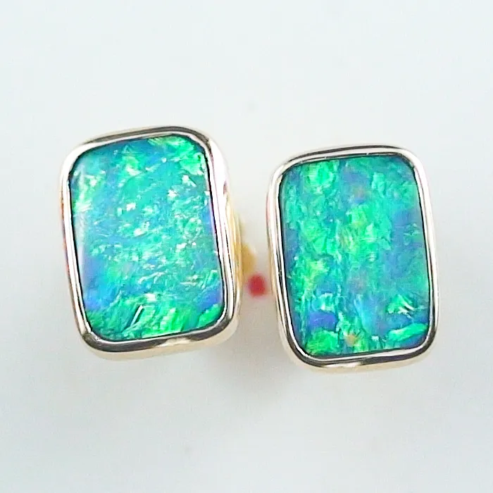 750er Gelbgold Opal Ohrstecker mit 0,62 ct. + 0,75 ct. Black Crystal Opalen