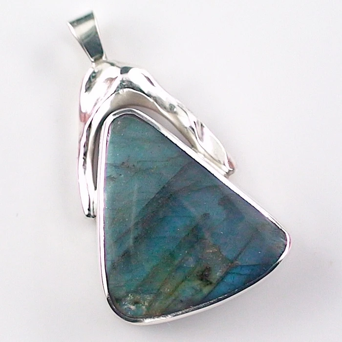 935 Silber Anhänger mit 15,19 ct. Labradorit – Kunstvoller Edelsteinanhänger mit Labradorit aus Labrador