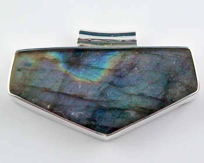 Wunderschöner 10,99 gr schwerer 935er Silberanhänger mit 32,90 ct Labradorit – massive Schmuck-Unikate bei der Opal-Schmiede sicher online bestellen.