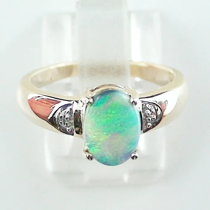9k Gelbgold-Ring mit australischem White Opal und Diamanten – Klassisches Design mit 0,85 ct Lightning Ridge Opal