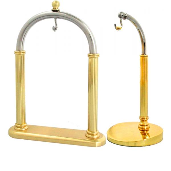 2 Taschenuhrständer zum Spezialpreis Je 1 Laternenförmiger und ein Bogenförmiger Taschenuhren Ständer. – verchromte Messingständer (teilvergoldet) mit Hacken zum Aufhängen einer Taschenuhr – massiver Sockel (poliert) mit Filzunterlagen Nicht feucht reinigen! Nur für den Innenbereich! 1 Laternen-Ständer: ca. 14.5 cm, ca. 190g Sockel Ø: ca. 6.5 cm 1 Bogen-Ständer: ca. 13.5 cm, ca. 200g Sockel: ca. 9.5 x 2.5 cm Dieses Set kann gerne vor einer Kaufentscheidung besichtigt, und auch vor Ort in Basel abgeholt werden. Portofreie Lieferung Aktionspreis nur solange Vorrat!