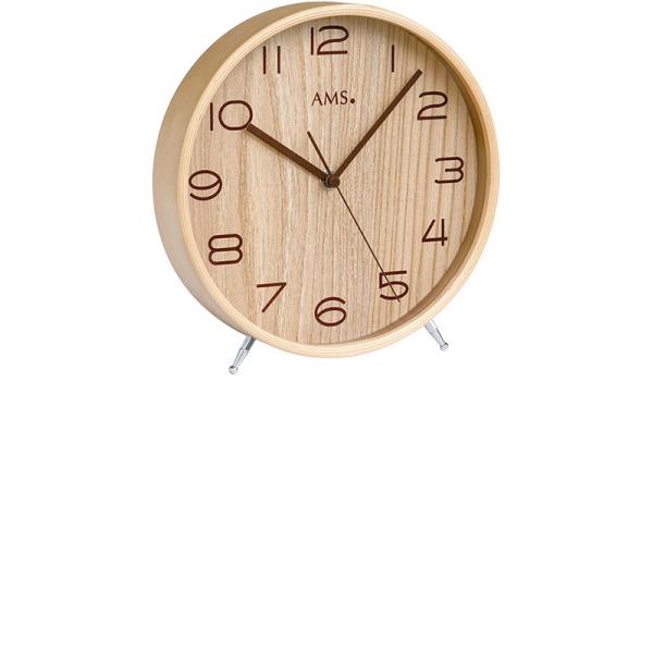 XL Funk Holz Tischuhren – Funkgesteuertes Uhrwerk- Holz Zifferblatt (Buchenlook)- ausgespahrte Klassikzahlen- braun/schwarze Stabzeiger- tickende Zentralsekunde (ausgewuchtet)- lqualitäts Funkwerk (UTS Germany – CE-zertifiert!)- braunes Pressholz Gehäuse (fourniert)- seitliche Stützpfeiler (verchromt)- echtes Mineralglas (flach)- geräuschhemmende Werkabdeckung (schwarz) Funkuhr:Automatische Zeiteinstellung, automatische Umstellung auf Sommer- und Winterzeit, keine Zeitzonen-Einstellung möglich! Der DCF-Sender der Cäsium-Atomzeitbasis mit der genauesten Uhr der Welt (Abweisung 1 Sekunde in ca. 2’000’000 Jahren) befindet sich bei Frankfurt a.M. Dessen Funksignale können in einem Radius von ca. 1’500 km empfangen werden.Einfache Montage!Staubgeschützt Nur für den Innengebrauch!22×22 cm, h: 4 cm, ca. 800g2 Jahre GarantiePreis inkl. Kartonbox, 1 Batterie (LR6/AA, 1.5V), VRG AMS Design Tischuhren Tischuhren aus Holz strahlen mit der individuellen Maserung reichlich Wärme und Wohlbehagen aus. Dies runde Holzuhr wirkt wohnlich und natülich. Passend zu nordischen oder zeitlos schlichten Einrichtungen bietet diese naturbelassenes Dekoruhr mit authentischer Maserung einen eigenen Charme. Seit mehr als 150 Jahren arbeiten die Uhrmacher im Familienunternehmen AMS-Uhrenfabrik mit Freude und Sorgfalt. Alle AMS Uhren sind CE zertifiziert und natürlich liefern wir die Batterien immer GRATIS mit ✓ Sie können alle Modelle mit 5% Vorkasse Rabatt bestellen. Wir sind seit über 20 Jahren autorisierter Schweizer AMS Fachhändler. Original AMS Tischuhr mit Garantie vom Schweizer Uhrmacher Neue Uhr mit Garantie des Herstellers. Portofreie Lieferung oder Abholung in Basel. Die Uhr kann gerne vor einer Kaufentscheidung besichtigt, und auch vor Ort in Basel abgeholt werden. Wir sind offizielle Schweizer Konzessionäre. Sie können alle Wand- und Tischuhren auch telefonisch bestellen. Gerne machen wir Ihnen ein Angebot!
