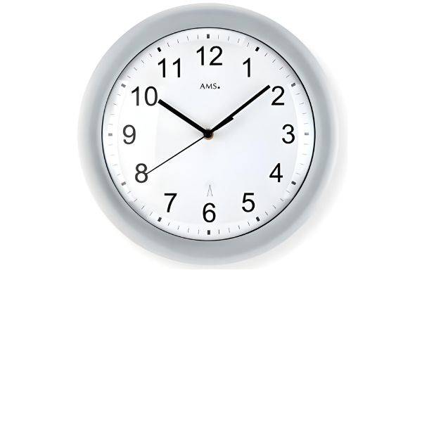 Das Design dieser Wanduhr fügt sich harmonisch in nahezu jede Umgebung ein. Das Zifferblatt mit Sekundenzeiger ist gross und gut ablesbar. Die Funk-Wanduhr empfängt die Uhrzeit über das DCF 77 Signal. Damit wird die aktuelle Uhrzeit stets auf die Sekunde genau angezeigt und es entfällt die Umstellung von Sommer- auf Winterzeit. Preiswerte Funk Wanduhren vom AMS – Funkgesteuerte Zeitanzeige- CE zertifiziertes qualitäts Funkwerk (UTS Germany)- weisses Zifferblatt – aufgedruckte Klassikzahlen (schwarz)  schwarz aufgedruckte Minuterie- schwarze Stabzeiger mit  Zentralsekunde (ausgewuchtet)- mattes Kunststoff Gehäuse (silbergrau)- echtes Mineralglas (bombiert)Funkuhr:Automatische Zeiteinstellung, automatische Umstellung auf Sommer- und Winterzeit, keine Zeitzonen-Einstellung möglich! Der DCF-Sender der Cäsium-Atomzeitbasis mit der genauesten Uhr der Welt (Abweisung 1 Sekunde in ca. 2’000’000 Jahren) befindet sich bei Frankfurt a.M. Dessen Funksignale können in einem Radius von ca. 1’500 km empfangen werden.Einfache Montage!Keine Lieferung ausserhalb der Schweiz!Staubgeschützt Nur für den Innengebrauch!Ø: 30 cm, h: 4 cm, ca. 600g2 Jahre GarantiePreis inkl. Kartonbox, 1 Batterie (LR6/AA, 1.5V), VRG Wir empfehlen vor einer Bestellung zu prüfen, ob am Montageort die für DCF77-Funkuhren erforderliche Qualität vorhanden ist. Wir übernehmen keine Kosten für den Austausch oder Umbau aufgrund von Funkempfangsproblemen. Ungeeignete Standorte – Räume in denen keine Radiowellen empfangen werden können (wie Keller, Untergeschosse etc.) – Durch örtliche Gegebenheiten (z.B. Gebäudedämpfungen) kann die Funkempfangs-qualität nachteilig beeinflusst werden,   so dass es in Einzelfällen zu Funktionsbeeinträchtigungen kommen kann. AMS Wanduhren Seit mehr als 150 Jahren arbeiten die Uhrmacher im Schwarzwäler Familienunternehmen von Alois Mayer in Schönenbach mit Freude und Sorgfalt. Alle AMS Uhren sind CE zertifiziert und natürlich liefern wir die Batterien immer GRATIS mit ✓ Sie können alle Modelle mit 5% Vorkasse Rabatt bestellen. Wir sind seit über 20 Jahren autorisierter Schweizer AMS Fachhändler. Original AMS Wanduhr vom Schweizer Uhrmacher Neue Funkuhr mit Garantie des Herstellers. Portofreie Lieferung oder Abholung in Basel. Die Uhr kann gerne vor einer Kaufentscheidung besichtigt, und auch vor Ort in Basel abgeholt werden. Wir sind offizielle Schweizer Konzessionäre. Sie können alle Modelle auch telefonisch bestellen. Gerne machen wir Ihnen ein Angebot! Die AMS Classic Time Funkwanduhr eignet sich für das Büro ebenso wie für das eigene Zuhause. Funkwanduhr mit vielen Einsatzmöglichkeiten Schulkinder sehnen den Schulschluss herbei, Büroangestellte den Feierabend und auch in den eigenen vier Wänden ist es mitunter gut, die Zeit im Blick zu behalten. Dass dies immer und überall möglich ist, dafür sorgt die AMS Classic Time Funkwanduhr. Mit einem Durchmesser von rund 30 cm ist sie groß genug, damit Sie die Uhrzeit auch aus einer grösseren Entfernung ablesen können, und gleichzeitig klein genug, damit sie in jede Umgebung passt. Der Kontrast zwischen dem weißen Ziffernblatt und den aufgedruckten schwarzen Klassikzahlen sowie der Minuterie erhöht die Lesbarkeit der AMS Classic Time Funkwanduhr zusätzlich. Das Kunststoffgehäuse der Funkwanduhr ist übrigens sehr strapazierfähig, sodass Sie die Uhr nahezu überall einsetzen können. Die Fakten zur AMS Classic Time Funkwanduhr Zeitumstellungen erfolgen automatisch. Nicht nur die gute Lesbarkeit eröffnet viele Einsatzmöglichkeiten für die AMS Classic Time Funkwanduhr. Auch weitere Funktionen sorgen dafür, dass Sie die Funkwanduhr problemlos bedienen können. So erhält die AMS Classic Time Funkwanduhr ihr Zeitsignal vom DCF-Sender der Cäsium-Atomzeitbasis. Diese steht in Frankfurt am Main und gilt als eine der genauesten Uhren der Welt. Über diesen Sender wird auch die Umstellung von der Sommer- auf die Winterzeit gesteuert, sodass Sie die Funkuhr nicht manuell einstellen müssen. Eine manuelle Einstellung ist auch bei der ersten Inbetriebnahme oder einem Batteriewechsel nicht nötig. Sobald Sie die Batterien eingesetzt haben, stellt sich die Funkwanduhr automatisch auf die richtige Uhrzeit ein. Die richtigen Standorte für die Uhr finden Da die AMS Classic Time Funkwanduhr über ein Funksignal gesteuert wird, ist der freie Empfang von Radiowellen für den Betrieb der Uhr wichtig. Standorte im Keller, Untergeschoss oder speziell isolierten Räumen sind daher nicht möglich.