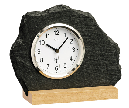 AMS Funk-Tischuhr Naturschiefer, Alu-Frontreif weiß