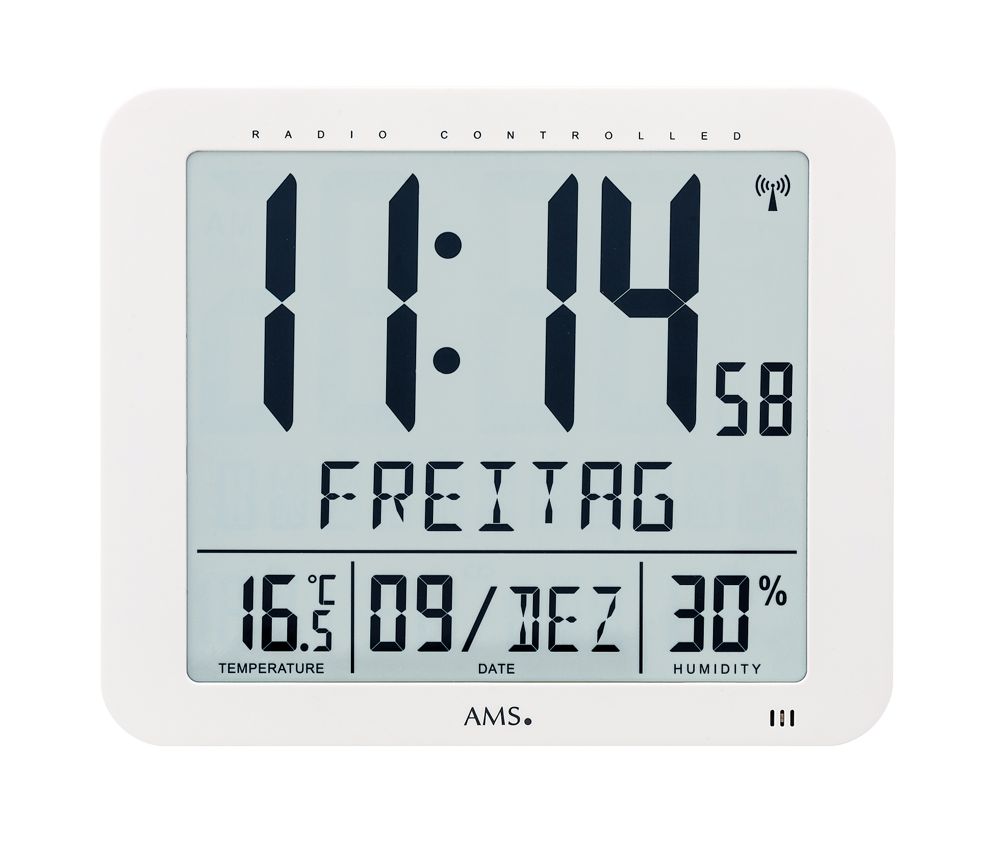 <br /><br />Digitale Anzeige von Zeit, Datum, Wochentag, Temperatur, Feuchtigkeit.