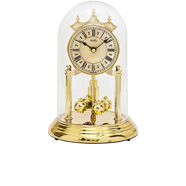 AMS Jahresuhren – Präzises Elektro-Quartzwerk- metalisé Zifferblatt (champagne) mit römischen Zahlen  und aufgedruckter Chemin-de-Fer Minuterie- schwarze Louis XVI Zeiger (h/m)- Messing Gehäuse mit Duroplastkern- 3 kleine Dekor Türmchen- Metallsäulen- Messingsockel  (innen mit stabilisierender Kunstoffeinlage)- Mineralglashaube (Staubschutz)- Torsions-Drehpendel mit synthetischen KristallkugelnStaubgeschützt Nur für den Innengebrauch!h: 23 cm, Fussdurchmesser 14cm. Gewicht ca. 600g2 Jahre GarantiePreis inkl. Kartonbox, 1 Batterie (LR6/AA, 1.5V), VRG AMS qualitäts Tischuhren Seit mehr als 150 Jahren arbeiten die Uhrmacher im Schwarzwäler Familienunternehmen von Alois Mayer in Schönenbach mit Freude und Sorgfalt. Alle AMS Uhren sind CE zertifiziert und natürlich liefern wir die Batterien immer GRATIS mit ✓ Sie können alle Modelle mit 5% Vorkasse Rabatt bestellen. Original AMS Jahresuhr mit Garantie vom Schweizer Uhrmacher Neue Uhr mit Garantie des Herstellers. Portofreie Lieferung oder Abholung in Basel. Die Uhr kann gerne vor einer Kaufentscheidung besichtigt, und auch vor Ort in Basel abgeholt werden. Wir sind offizielle Schweizer Konzessionäre. Sie können alle Modelle auch telefonisch bestellen. Gerne machen wir Ihnen ein Angebot! ⭐ Weitere » Jahresuhren finden Sie auch in unserem Fachgeschäft in Basel.