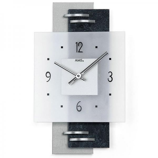 AMS Design Wanduhren – Präzisions Quartzwerk- milchweisses Glas-Zifferblatt  KEIN Frontglas- aufgeddruckte schwarzenZahlen und Indexpunkte- silberne Stunden- und Minutenzeiger- kein Sekundenzeiger- Rückwand Pressholz mit Schiefer- und SilberdekorEinfache Montage!bedingt Staubgeschützt (da kein Frontglas)Nur für den Innengebrauch!b: 22 cm, h: 36, t: 5 cm2 Jahre GarantiePreis inkl. Kartonbox, 1 Batterie (LR6/AA, 1.5V), VRG AMS Wanduhren aus Deutschland Seit mehr als 150 Jahren arbeiten die Uhrmacher im Familienunternehmen AMS-Uhrenfabrik mit Freude und Sorgfalt. Alle AMS Uhren sind CE zertifiziert und natürlich liefern wir die Batterien immer GRATIS mit ? Sie können alle Modelle mit 5% Vorkasse Rabatt bestellen. Wir sind seit über 20 Jahren autorisierter Schweizer AMS Fachhändler. Für Firmen und öffentliche Einrichtungen bieten wir » Spezialkonditionen.Wir beraten Sie gerne, bei der Wahl der geeigneten Uhr. Rufen Sie uns einfach an. Original Wanduhr vom Schweizer Uhrmacher Neue Uhr mit Garantie des Herstellers. Die Uhr kann gerne vor einer Kaufentscheidung besichtigt, und auch vor Ort in Basel abgeholt werden. Portofreie Lieferung. Wir sind offizielle Schweizer Konzessionäre. Gerne machen wir Ihnen ein Angebot!