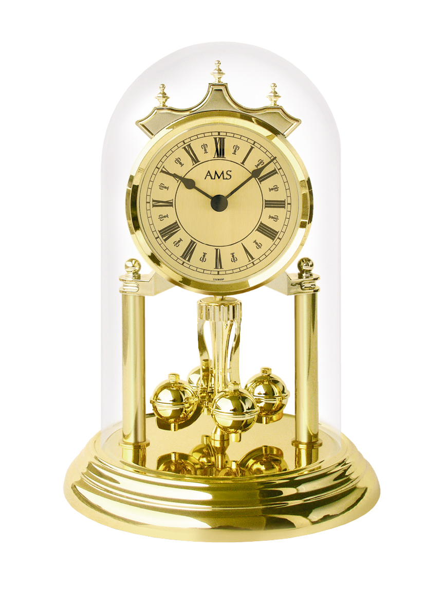 Jahresuhr mit Quarzwerk, Messingsockel und Mineralglas, römische Ziffern. Höhe: 23 cm.