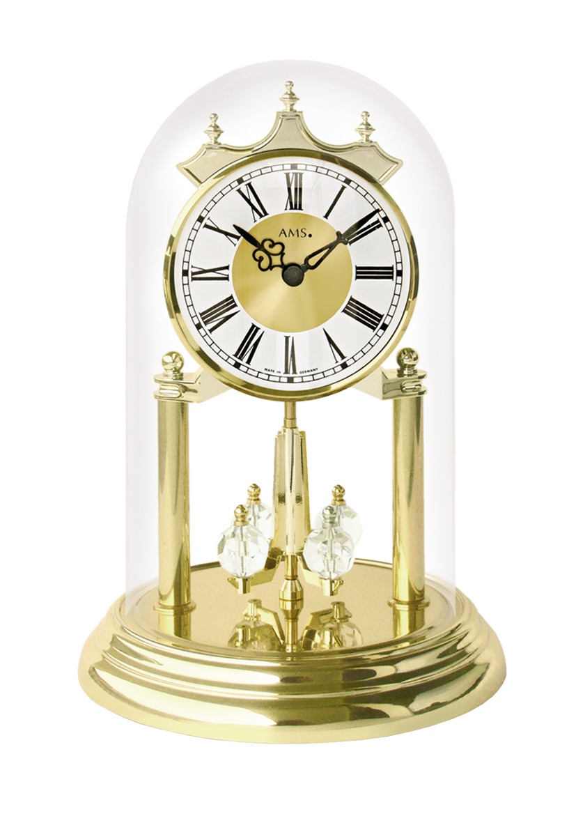 Jahresuhr mit Quarzwerk in Messingoptik, mit Mineralglas, römische Ziffern. Höhe: 23 cm.