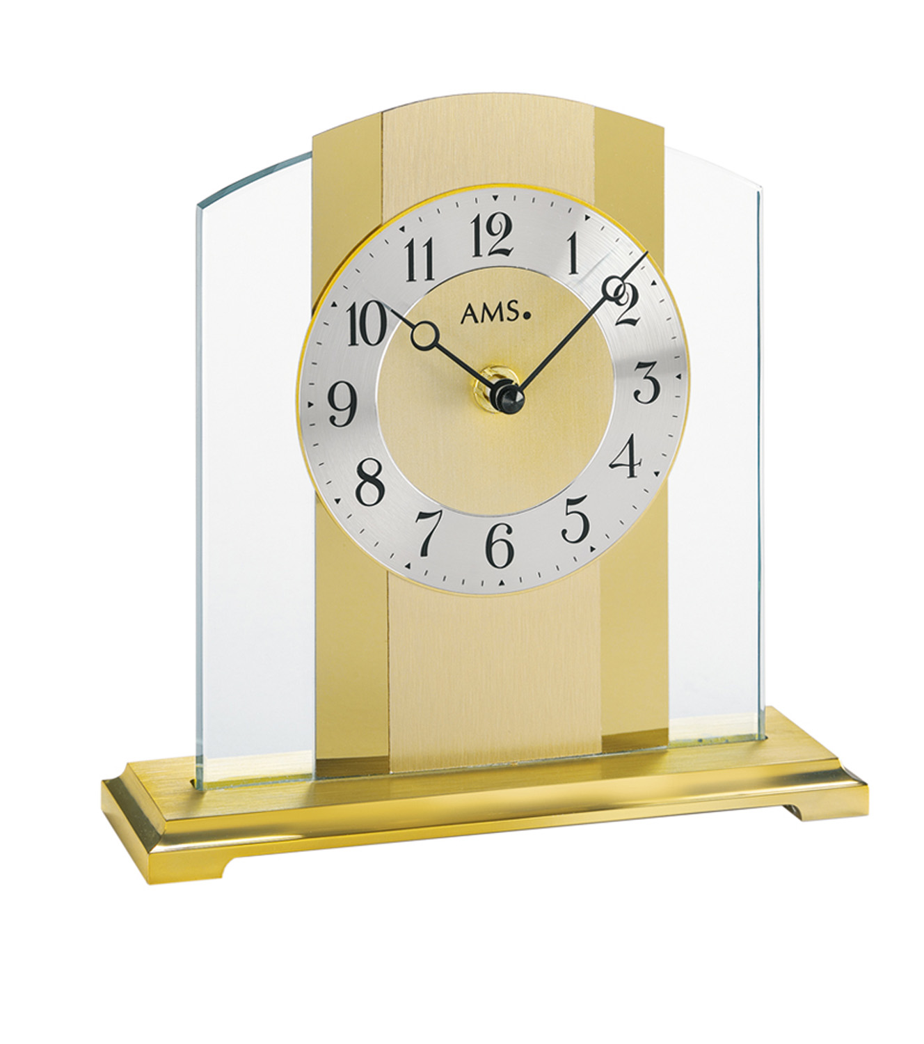 <br />• Metallsockel. Mineralglas. Messing-Applikation