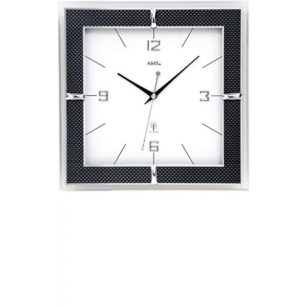 AMS Teacher Square Funkwanduhr, weiss, Carbonoptik