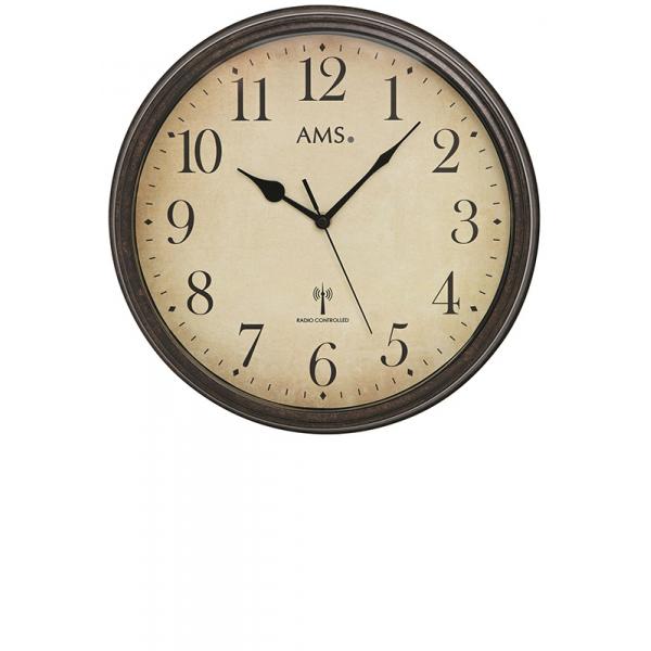 Funk Wanduhren – Funkgesteuerte Zeitanzeige- kontrasstarkes Zifferblatt (beige)- elegante Klassikzahlen (schwarz)  mit Logo und aufgedruckter Minuterie- schwarze Birnenzeiger- Zentralsekunde (ausgewuchtet)- leises qualitäts Funkwerk (UTS Germany – CE-zertifiert!)- braunes Metall – Gehäuse (Vintagelook, mattiert)- echtes Mineralglas (flach)- geräuschhemmende WerkabdeckungFunkuhr:Automatische Zeiteinstellung, automatische Umstellung auf Sommer- und Winterzeit, keine Zeitzonen-Einstellung möglich! Der DCF-Sender der Cäsium-Atomzeitbasis mit der genauesten Uhr der Welt (Abweisung 1 Sekunde in ca. 2’000’000 Jahren) befindet sich bei Frankfurt a.M. Dessen Funksignale können in einem Radius von ca. 1’500 km empfangen werden.Einfache Montage!Staubgeschützt Nur für den Innengebrauch!Ø: 32 cm, h: 5 cm, ca. 980g2 Jahre GarantiePreis inkl. Kartonbox, 1 Batterie (LR6/AA, 1.5V), VRG AMS Tisch- und Wanduhren Seit mehr als 150 Jahren arbeiten die Uhrmacher im Familienunternehmen AMS-Uhrenfabrik mit Freude und Sorgfalt. Alle AMS Uhren sind CE zertifiziert und natürlich liefern wir die Batterien immer GRATIS mit ✓ Sie können alle Modelle mit 5% Vorkasse Rabatt bestellen. Wir sind seit über 20 Jahren autorisierter Schweizer AMS Fachhändler. Original AMS Wanduhr vom Schweizer Uhrmacher Neue Uhr mit Garantie des Herstellers. Portofreie Lieferung oder Abholung in Basel. Die Uhr kann gerne vor einer Kaufentscheidung besichtigt, und auch vor Ort in Basel abgeholt werden. Wir sind offizielle Schweizer Konzessionäre. Sie können alle Modelle auch telefonisch bestellen. Gerne machen wir Ihnen ein Angebot! Hänge Dir die schöne Vintage Look Funkwanduhr von AMS in Dein Wohn- oder Schlafzimmer, und verleihe Deinen Räumlichkeiten einen klassischen Touch! Eine romantische Nostalgie-Uhr für Dein Zuhause Die Vintage Look Funkwanduhr von AMS ist perfekt für jeden, der gerne klassische und altmodische Looks mag und seine Zimmer am liebsten mit Möbeln aus dem Antiquitätenladen ausstattet. Diese stilvolle Uhr ist rundum in einer schönen Vintage-Optik gehalten und wird an Deiner Wand garantiert zu einem schicken Blickfang. Beim Ziffernblatt der Uhr hat man sich für eine leicht verblichene beige Färbung entschieden, auf der die eleganten schwarzen Klassikzahlen optimal zur Geltung kommen. Das klassische Aussehen der Vintage Look Funkwanduhr von AMS wird zu guter Letzt mit dem schwarzen Birnenzeiger abgerundet. Hochwertige Qualität dank einem exakten Uhrwerk In die Vintage Look Funkwanduhr von AMS hat man bei der Herstellung ein CE-zertifiziertes Qualitätsfunkwerk eingebaut. Dieses bekommt die Uhrzeit vom besonders genauen DCF-Sender der Cäsium-Atomzeitbasis in Frankfurt am Main übermittelt. So wechselt die Uhr auch von selbst von Sommer- auf Winterzeit, und Du musst sie nicht extra per Hand umstellen. Dazu ist das Uhrwerk auch besonders leise und eignet sich deswegen optimal für Dein Schlafzimmer. Bringe die Uhr in Nullkommanichts an Deiner Wand an Die Vintage Look Funkwanduhr von AMS zeichnet sich vor allem auch durch ihre leichte Montage aus. Du kannst sie ganz bequem mit nur wenigen Handgriffen an Deiner Wand anbringen, und sie ist dort sofort einsatzbereit. Damit Du sie auch direkt in Betrieb nehmen kannst, sind im Lieferumfang der Uhr bereits passende Batterien enthalten. Es ist aber auch möglich Akkus (aufladbare Batterien) zu verwenden und dadurch die Umwelt zu schonen. Gerne beraten wir Sie bei der Wahl der Uhr. Rufen Sie einfach unsere Hotline an.