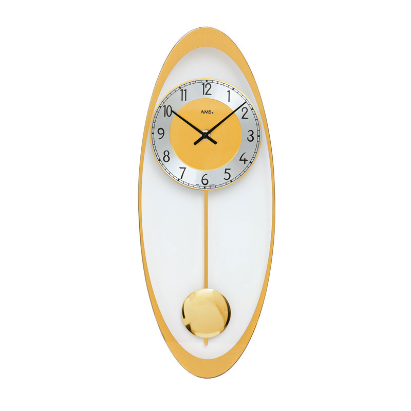 <br />Ganggenaues Quarzpendelwerk mit poliertem Messingpendel.