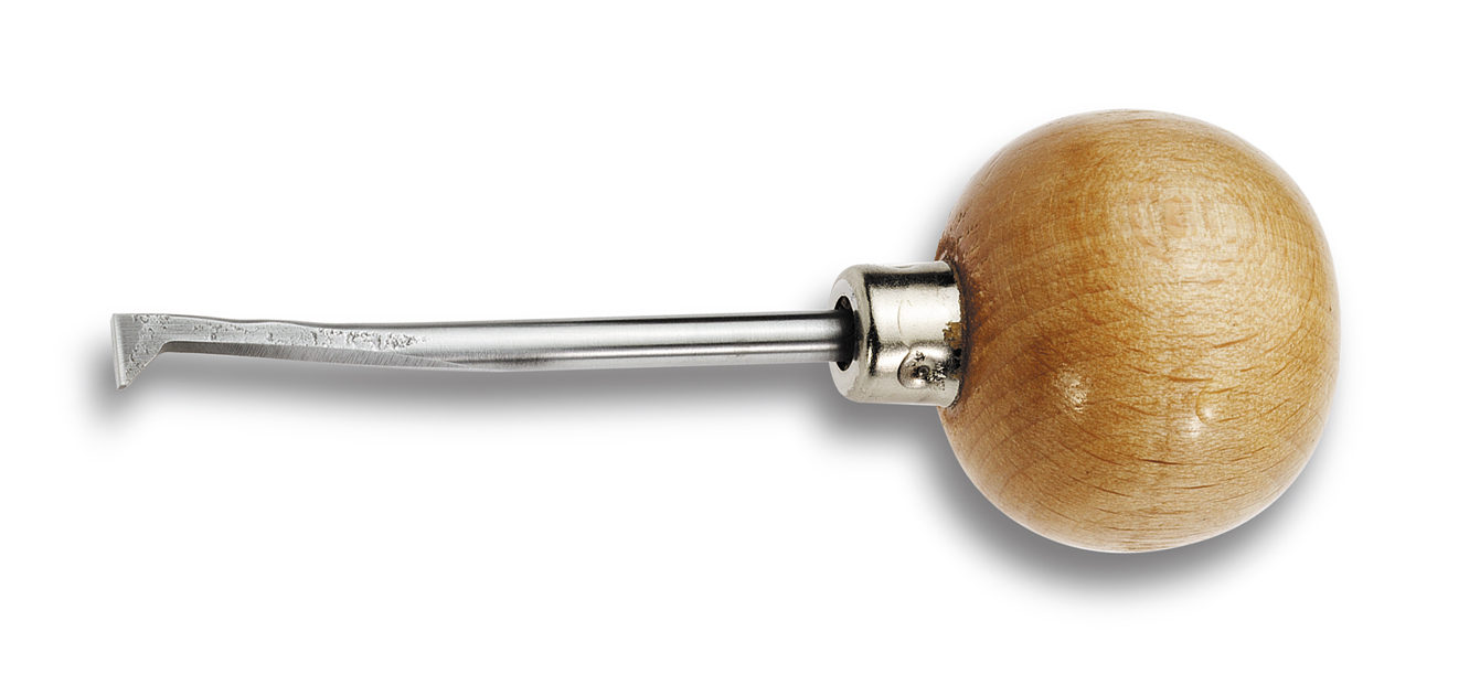 Aus gehärtetem Stahl, mit Holzheft. Bockfuß, breit.