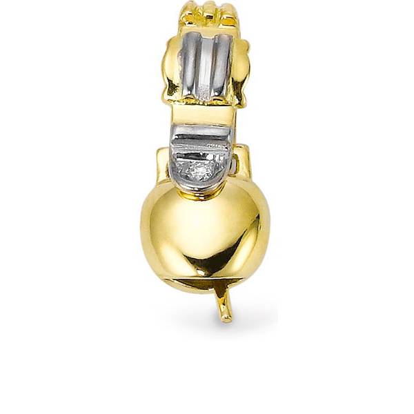 Schmuckanhänger in Gold Motiv: Kuhglocke (Volklore)Version: 17×7 mmMaterial: 18K Gold (750) mit 1 Diamant (0.01ct)Oberfläche: poliert Unisex für Sie und Ihn. Dieser Bicolor-Goldschmuck besticht durch ein abwechslungsreiches Farbenspiel. Der Diamant gilt als der edelste aller Steine. Licht, das sich in der speziellen Kristallstruktur des Diamanten bricht, gleicht einem funkelnden Feuer. 18 Karat Gold Gold zählt zu den ersten Metallen, die von Menschen verarbeitet wurden. Reines Feingold eignet sich aber nicht für die Herstellung von Schmuck, da es zu weich ist und es leicht zu Kratzern und Beschädigungen kommen kann. Zur Verbesserung der Materialeigenschaften hat es sich deshalb bewährt, weitere Legierungspartner – meist Silber und Kupfer – hinzuzufügen. Die Reinheit von Gold wird historisch in “Karat” angegeben. Der Begriff “Karat” oder “Carat” wird aber auch als Gewichtseinheit für Edelsteine verwendet. Für Gold, wird “Karat” aber allein zur Angabe der Reinheit gebraucht. Gelbgold ist durch ihren hohen Erkennungswert weltweit mit Abstand die beliebteste Goldfarbe. Dabei handelt es sich um eine dem Feingold ähnelnde gelbe Goldlegierung aus Feingold mit reinem Silber und Kupfer. In unserem Geschäft wird hauptsächlich 18 Karat Gold verarbeitet und sind entsprechend der Reinheit mit “750” gestempelt.