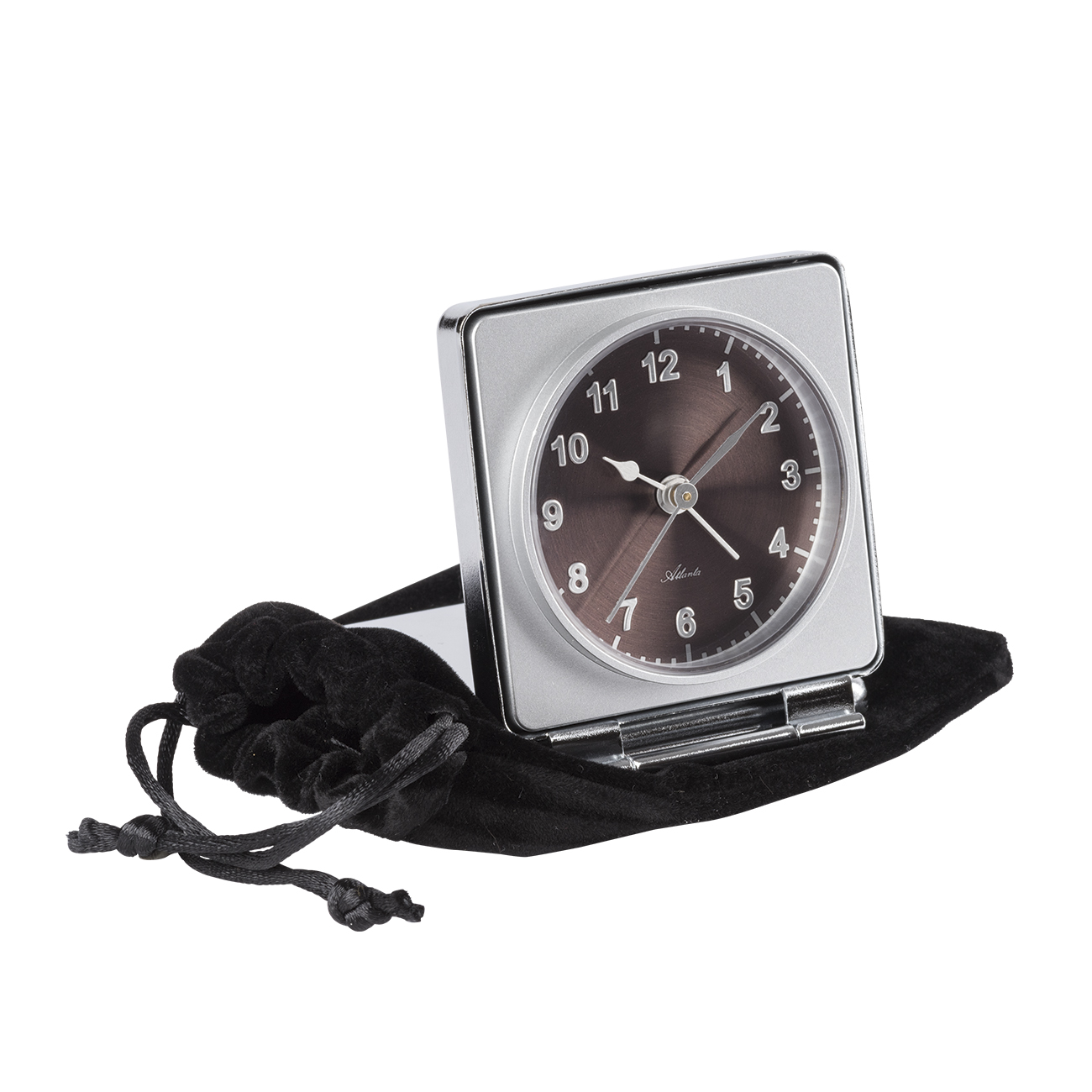 Quarzwecker, Reisewecker in attraktivem Metallgehäuse zum Aufstellen, Samtetui, Crescendo