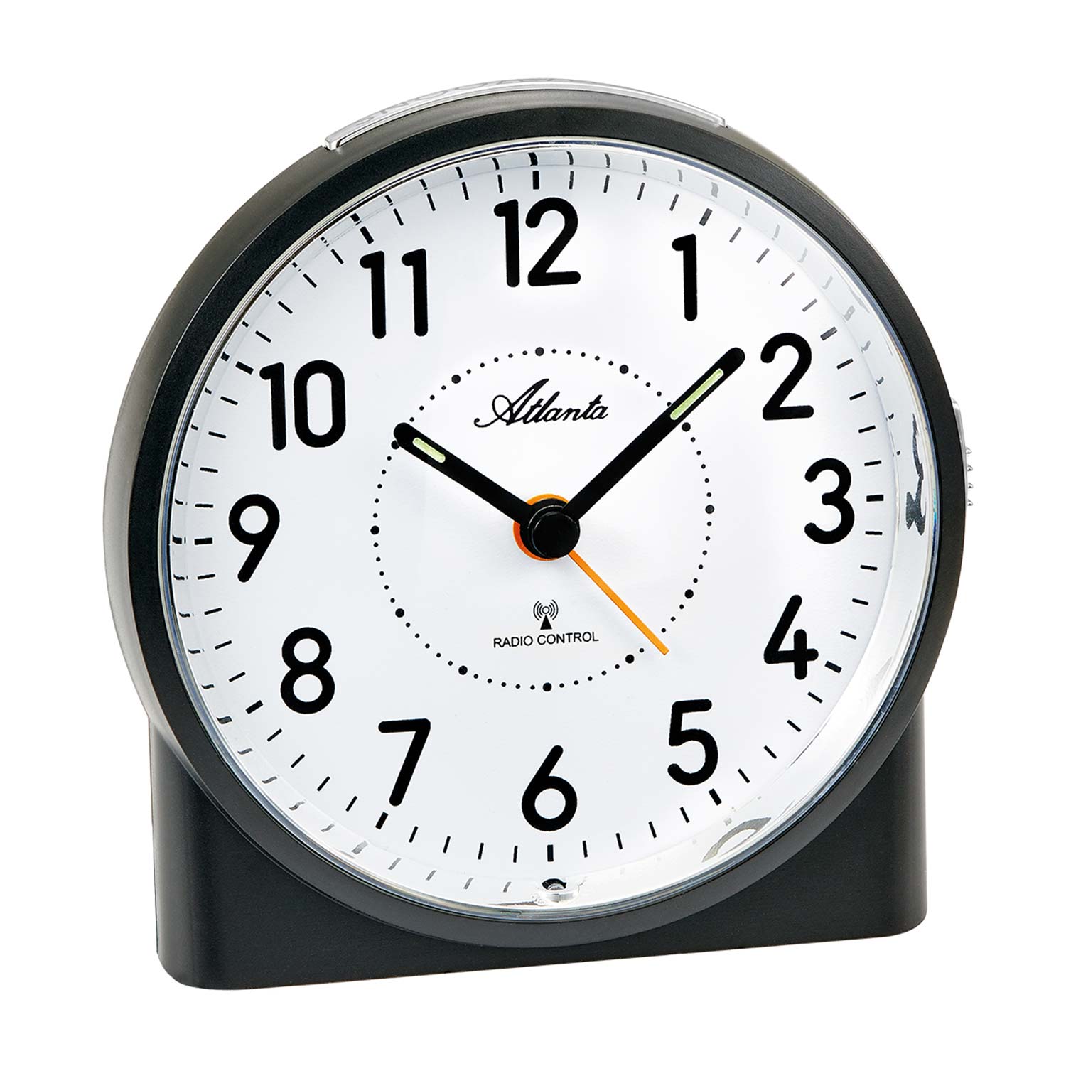 Funkwecker mit Repetition, ansteigendem Wecksignal, Zifferblattbeleuchtung und geräuscharmem Laufwerk.