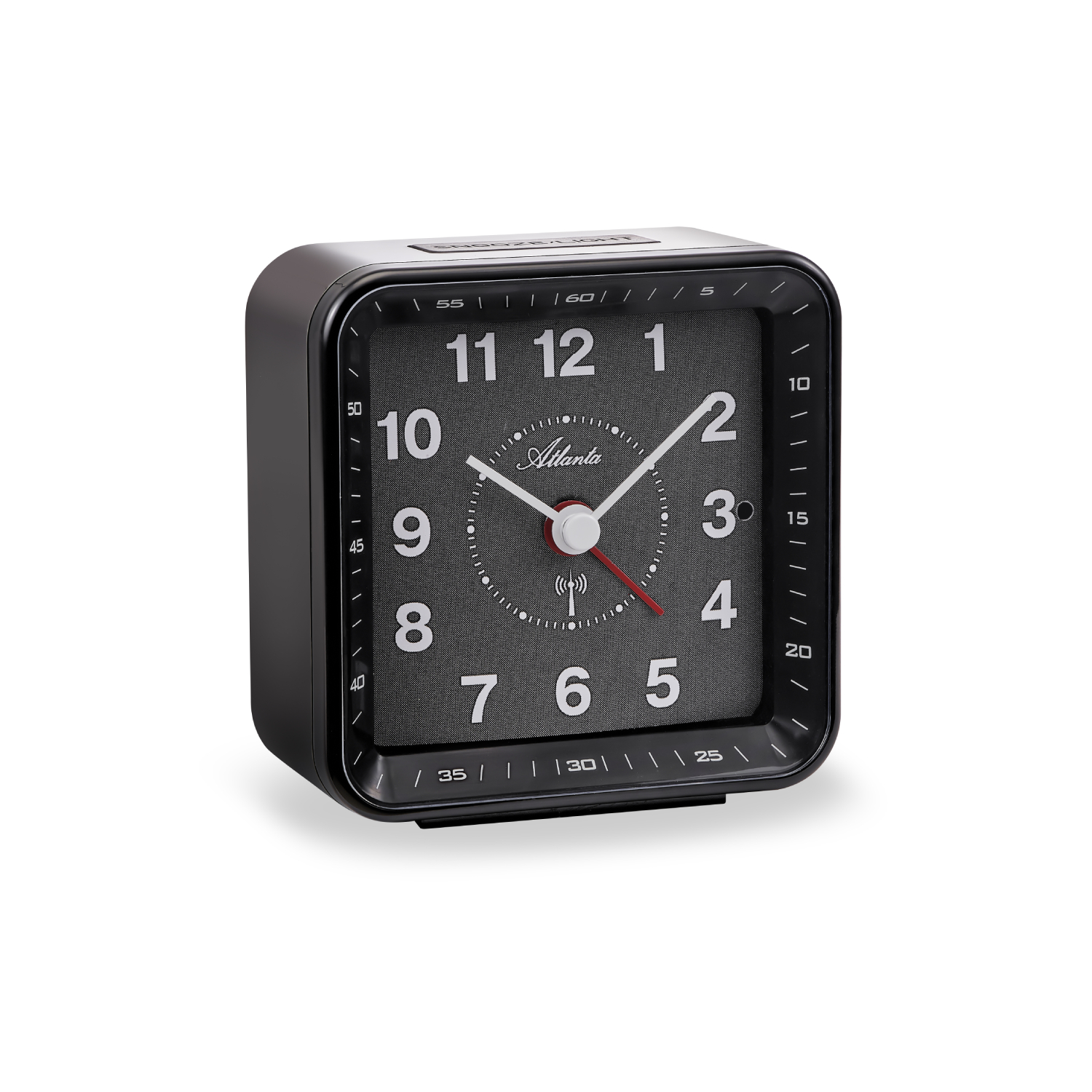Funkwecker mit Leisegang, Licht, Repetition, Weckstandsanzeige und seitlichem Alarmschalter.