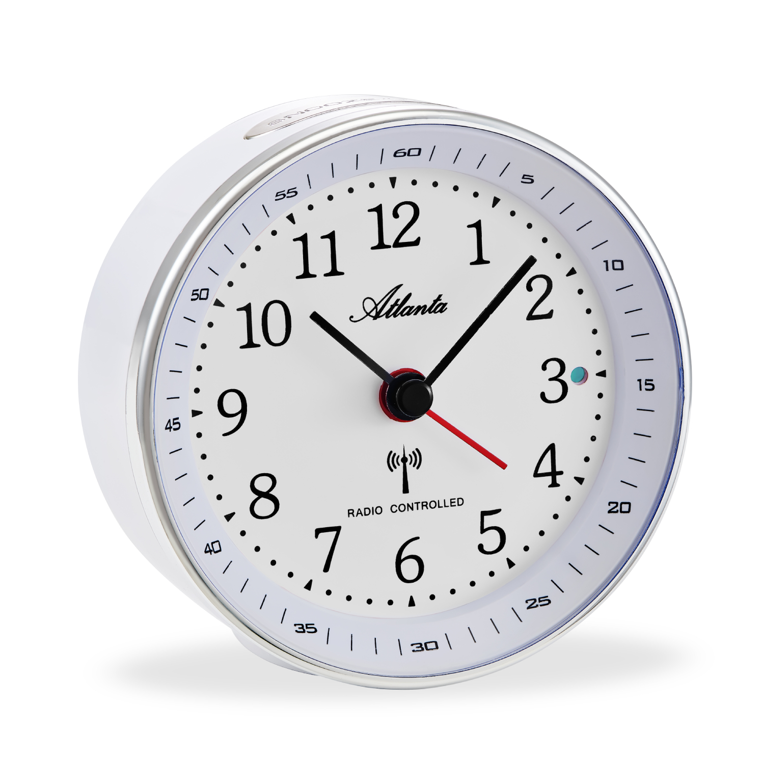 Funkwecker mit Leisegang, Licht, Repetition, Weckstandsanzeige und seitlichem Alarmschalter.