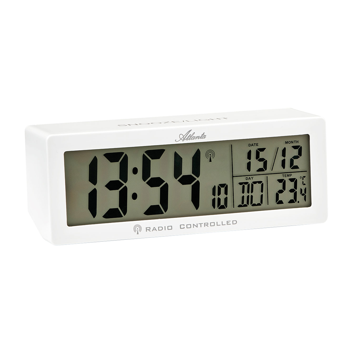 Digitaler Funkwecker mit Touch-Technologie, Volume Control, Repetition, spezieller Hintergrundbeleuchtung, Datums- und Temperaturanzeige.