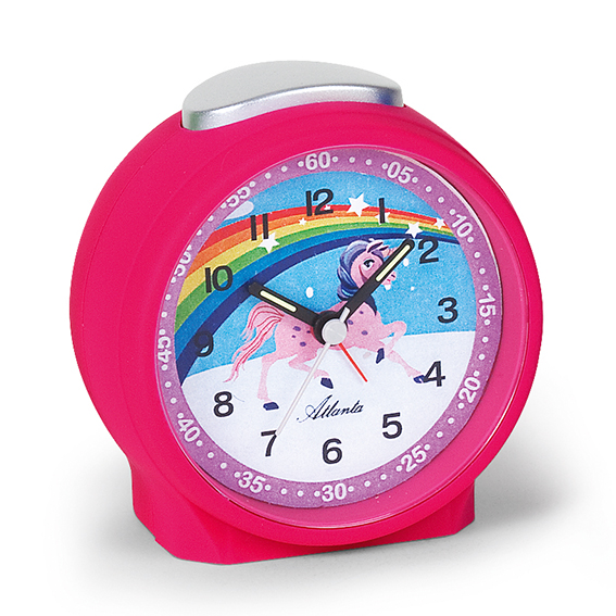 Quarzwecker, schleichende Sekunde, RUBBER FINISH, Repetition, Licht, Crescendo, Zifferblatt mit Einhorn-Motiv