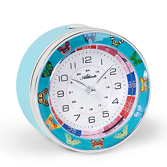 Quarzwecker, schleichende Sekunde, Repetition, Licht, Crescendo, Tiermotive Schmetterlinge, Lernzifferblatt