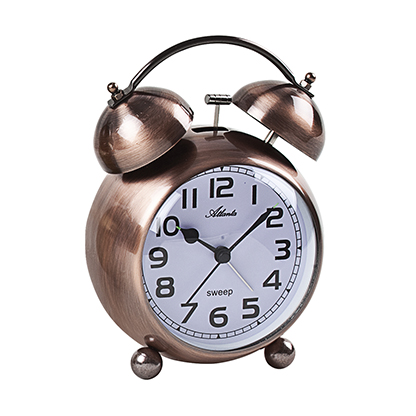 Quarzwecker mit Glockensignal, schleichende Sekunde, Retrolook DG-Wecker, Licht, Metallgehäuse