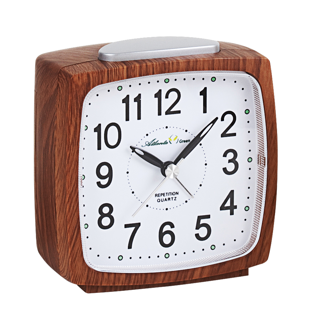 Quarzwecker, schleichende Sekunde, Licht, Glockensignal, Repetition, Gehäuse aus nachwachsenden Rohstoffen – biologisch abbaubar, elegante Holzoptik