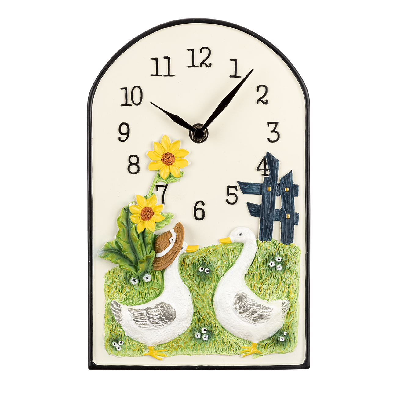 Küchenuhr multicolor mit Steingutgehäuse aus Keramik, Motiv "Gänse"