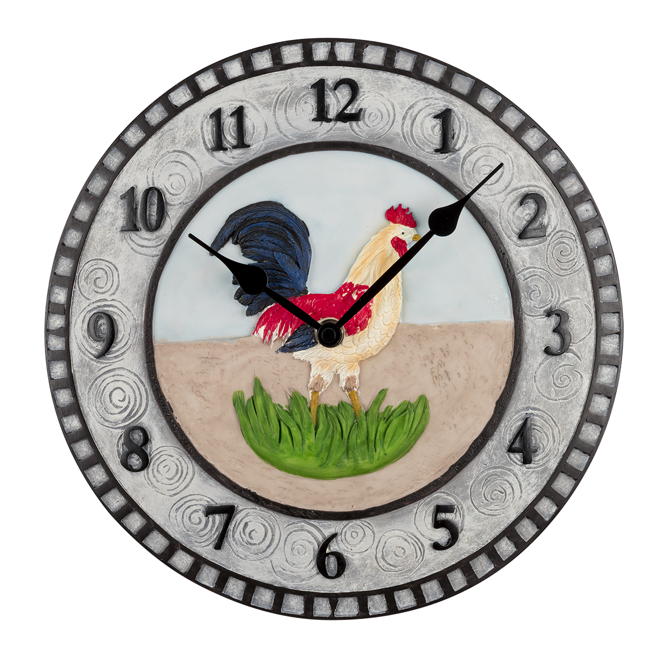 Küchenuhr multicolor mit Steingutgehäuse aus Keramik, Motiv "Hahn"