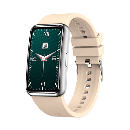 <br /><br />• Lieferumfang: 1 Smartwatch mit silbernem Gehäuse und beigem Silikonarmband + 1 magnetische USB-Ladestation + Bedienungsanleitung