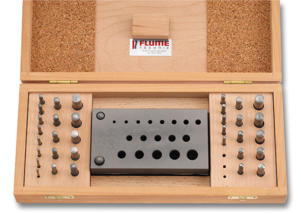 Die Präzisions-Aushauwerkzeuge "A, Z und F", aus Werkzeugstahl werden in einem Buchenholz Kasten geliefert.<br />
