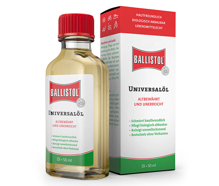 <br /><br />Ballistol Universalöl wird in Deutschland seit über fünf Generationen hergestellt und weltweit vertrieben. Ursprünglich als Waffen- und Wundöl für das kaiserliche Heer entwickelt, wurde es bald ein geschätztes Hausmittel in Deutschland, Österreich und in der Schweiz. Millionen von Verbrauchern haben damit experimentiert und dafür neue überraschende Anwendungen gefunden, bis hin zum Einsatz bei Mensch und Tier.
