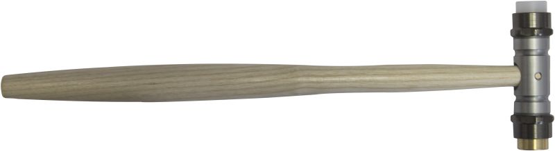 Hammer mit einem Ende aus Kunststoff und einem aus Messing.