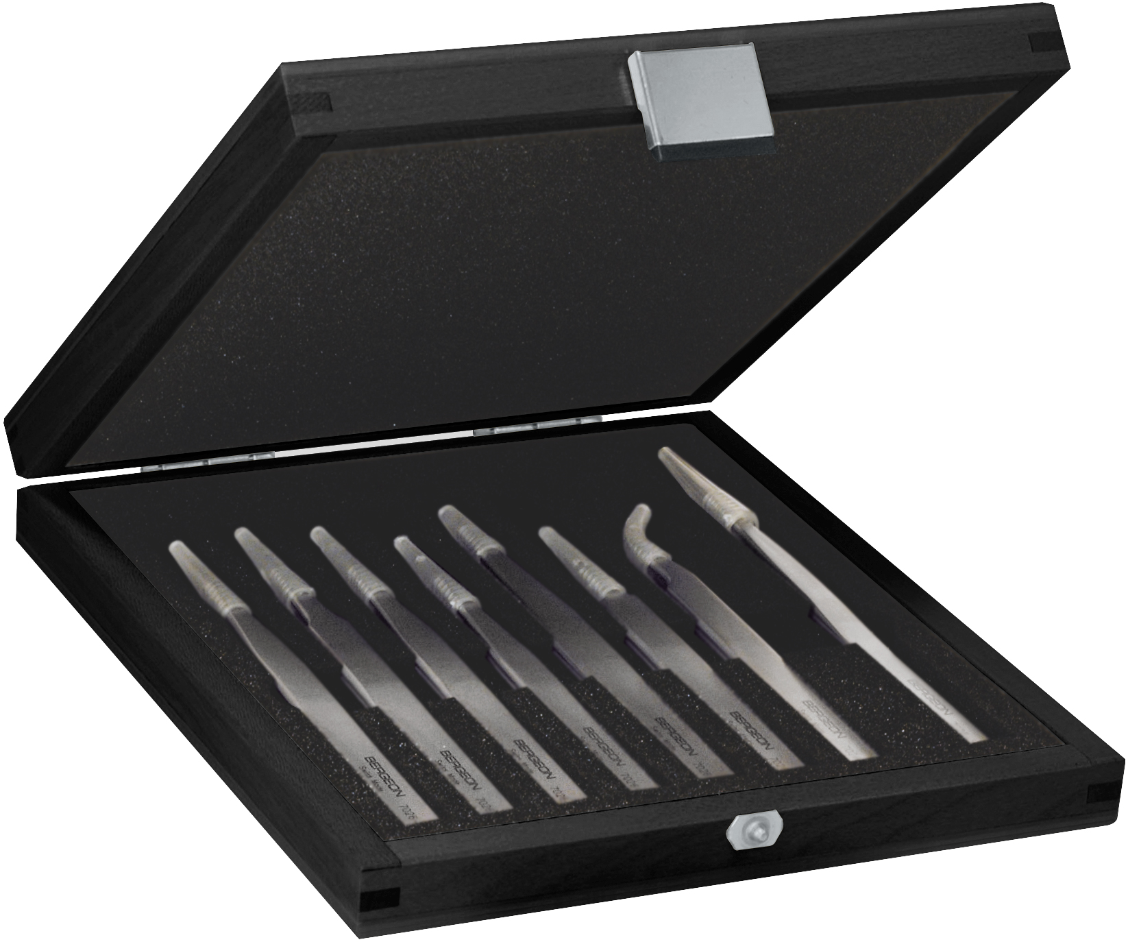 Bergeon Kornzangen-Set 8 Stück Bergeon Form 1-2-3-3C-5-AA-7-SS antimagnetisch