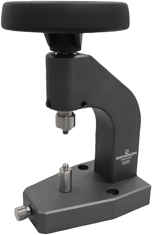 Die Bergeon Universal Spindelpresse aus anodisiertem Aluminium ist optimal geeignet zum Setzen von Uhrgläsern und gepressten Gehäuseböden.