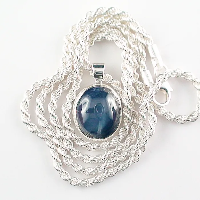 Blauer 8,59 ct. Sternsaphir Anhänger aus 935er Silber mit Silberkette