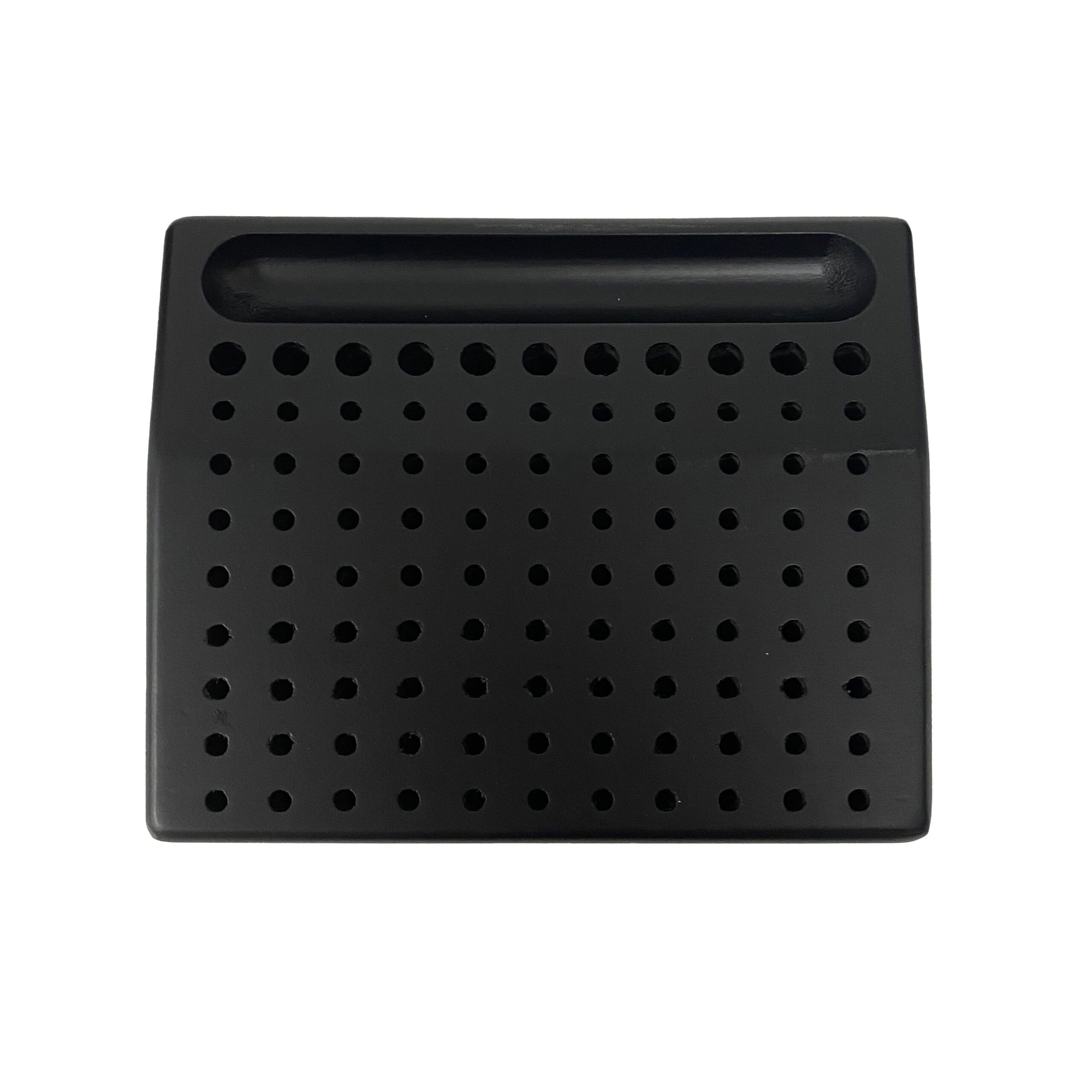 <br /><br />Der Bohrer-Ständer hat 8 Reihen mit jeweils 11 gebohrten 4 mm Löchern (88 Löcher) für die Aufnahme von Bohrern und Bits mit einem Durchmesser von 3/32" oder 1/8" und ein oberes Loch mit 11 Löchern, das auf 7,5 mm gebohrt ist, um Gegenstände mit größerem Durchmesser aufzunehmen.