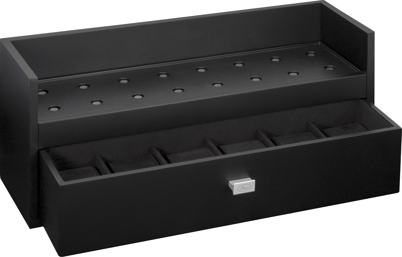 Beco Boxy Center Big Grundplatte für die Speisung von bis zu 12 Boxy Uhrenbewegern, mit zusätzlicher Schublade für 6 Uhren.