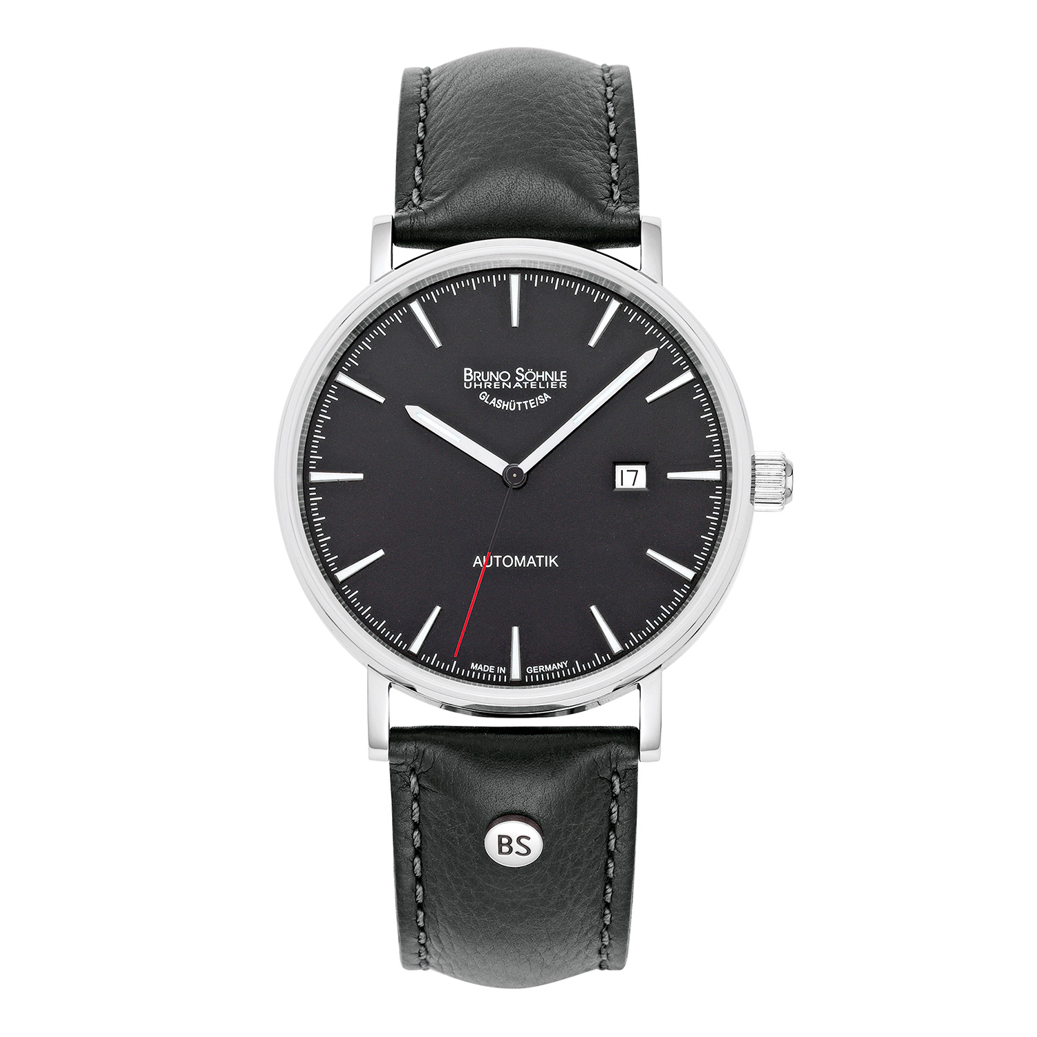 ÄSTHETIK UND FUNKTIONALITÄT – diese Bruno Söhnle-typische Symbiose verdeutlicht auch die MÜNCHEN AUTOMATIK I, die sich durch eine klare Formgebung und eine technisch überzeugende Präzision auszeichnet: Während das mit Indexen, Datumsanzeige bei der ‚3' und zentraler Sekunde versehene Zifferblatt ein mondänes Designbewusstsein ausstrahlt – und mit dem robusten Edelstahlgehäuse eine ebenso optisch ideale Einheit bildet –, sorgt im Innern das Automatikwerk für die stete Ganggenauigkeit.