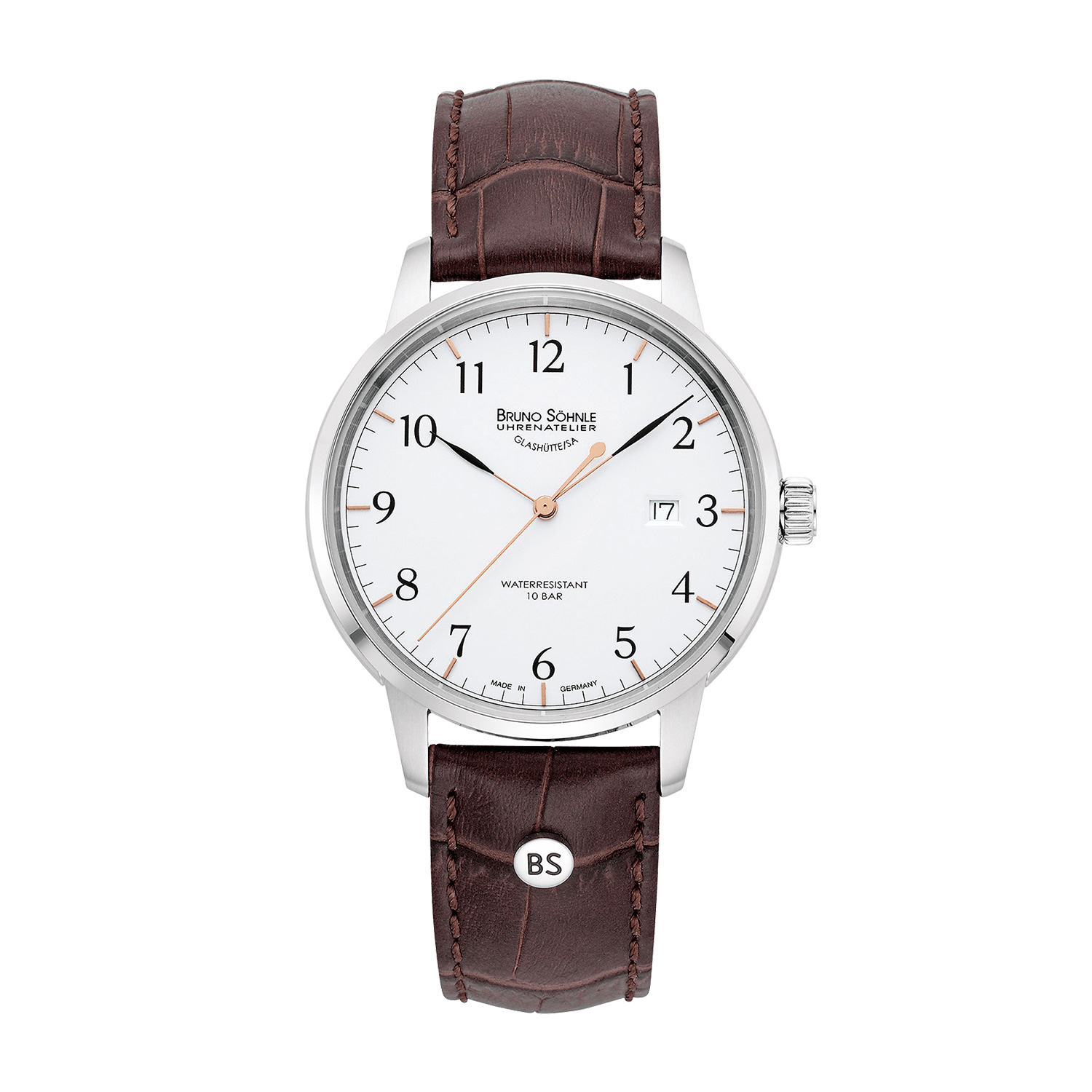 BRUNO SÖHNLE – das ist eine ganz eigene, von traditioneller Handwerkskunst geprägte Uhrenwelt, in der jedes Modell durch ihren authentischen, in Form und Technik individuell gestalteten Charakter gefällt – und das ohne die übliche Trendhast! Vielmehr soll eine Armbanduhr der Marke Bruno Söhnle zugleich das hochwertige Glashütter Niveau repräsentieren, das auf keinen modischen Einheitslook abzielt, sondern eine eigene Persönlichkeit und das handwerkliche Qualitätsbewusstsein voranstellen will.